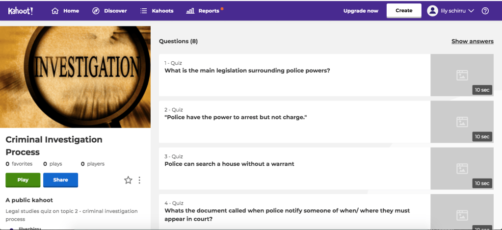 Screenshot of a Kahoot I Created for an Assignment (CC By Lily Schirru).